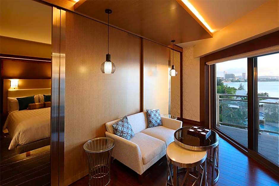 This contemporary, spacious suite has views of Tumon Bay and features a living room and a private terrace.